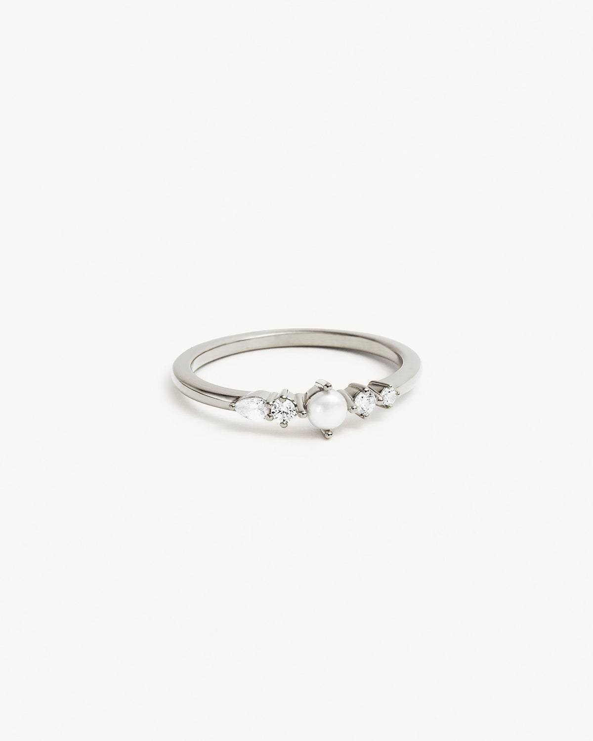 • Unique Design: Set with round and pear cut cubic zirconias and a round natural freshwater pearl.