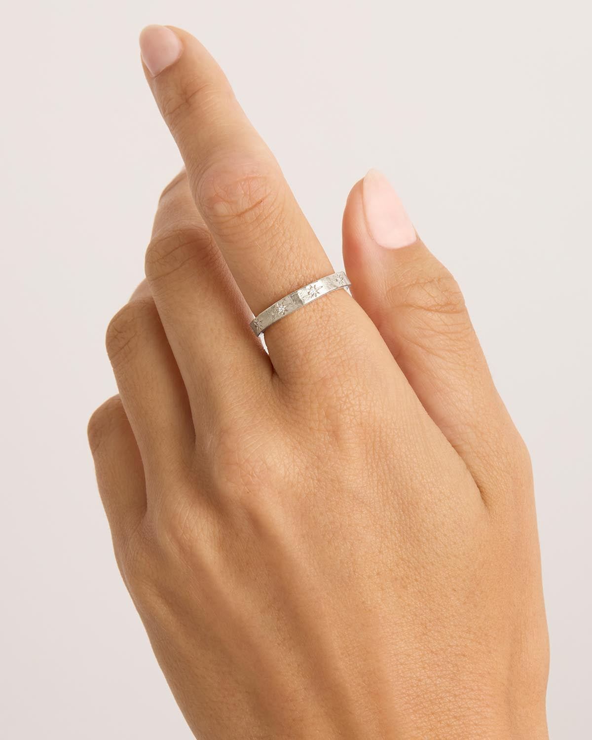 Layer yourself in the heavens with our crystal encrusted Stardust Ring, a subtly battered adornment inspired by the night sky and the celestial bodies that eternally guide us.