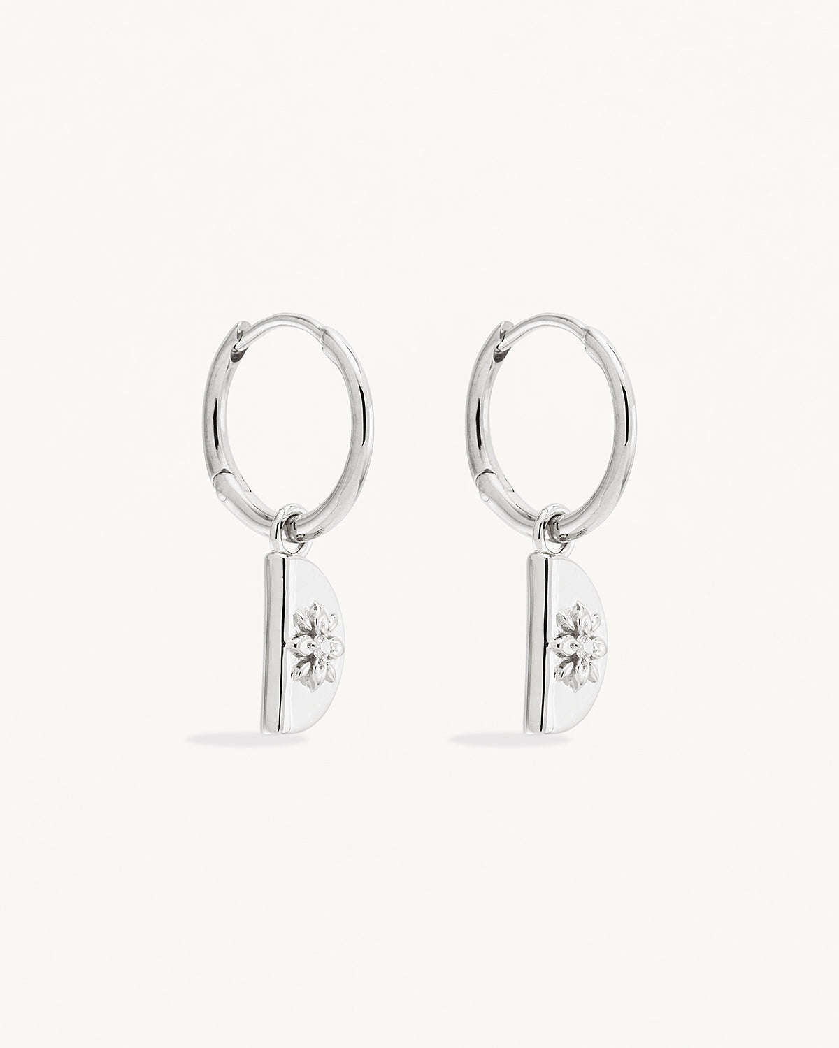 Each hoop features our iconic lotus, set with a sparkling crystal that adds a touch of elegance to your look. Crafted in sterling silver, with option for yellow gold plate or white gold plate, rose gold plate.