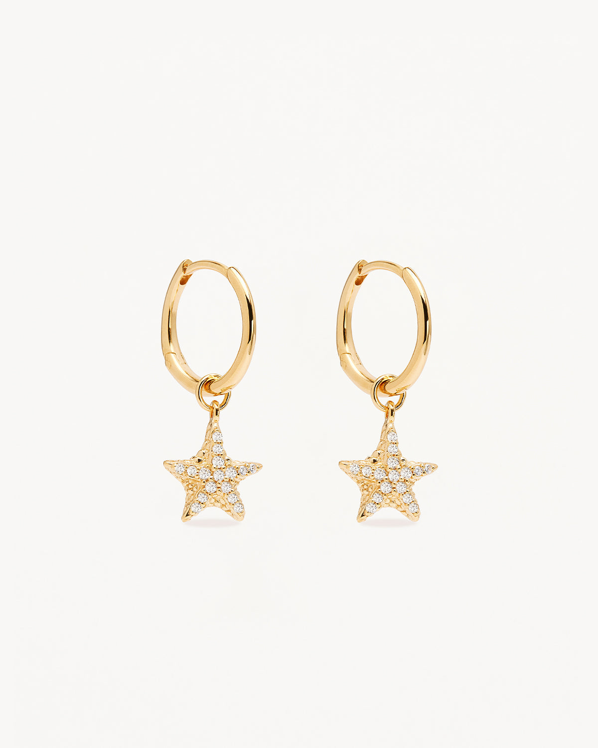 Yellow Gold Vermeil By the Sea Crystal Starfish Hoops