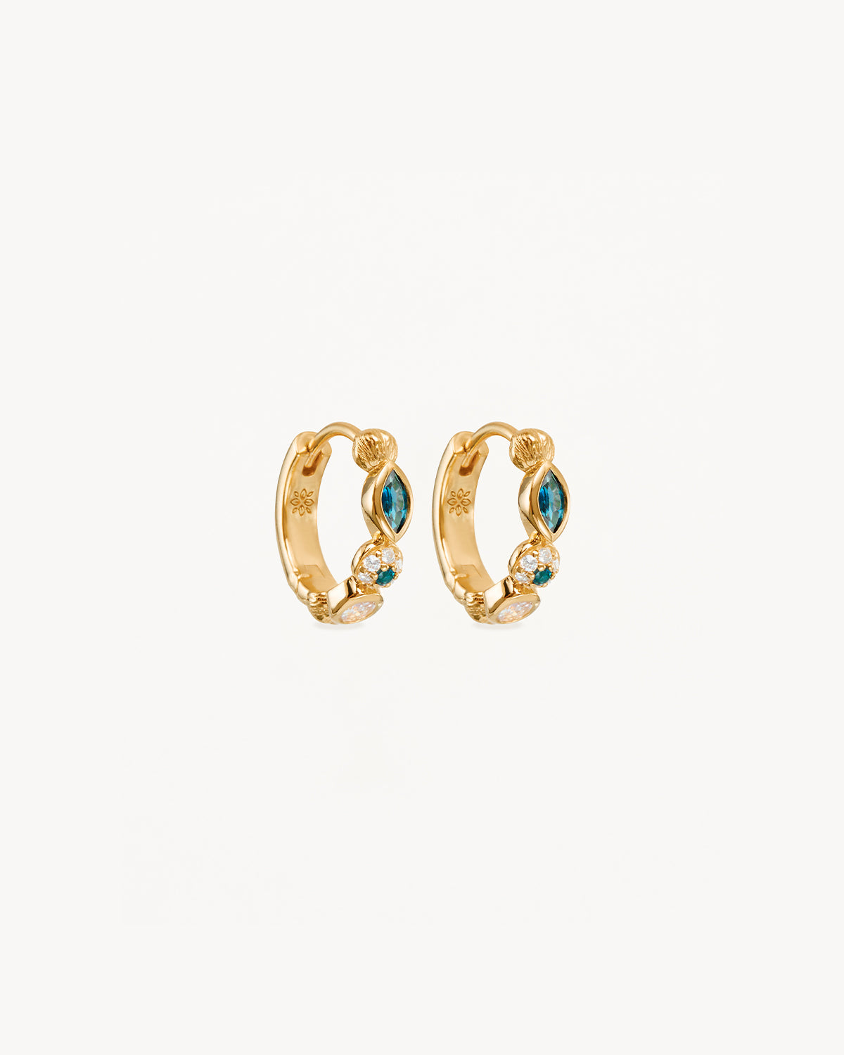 Allow the watchful eye of the evil eye to bring you peace and protection in these Protection of Eye Hoops. These dainty evil eye gemstone hoops feature contrasting finishes and are set with cubic zirconias and natural blue topaz. Protected by the evil eye, you can embark upon your journey with confidence and unbound self-love.