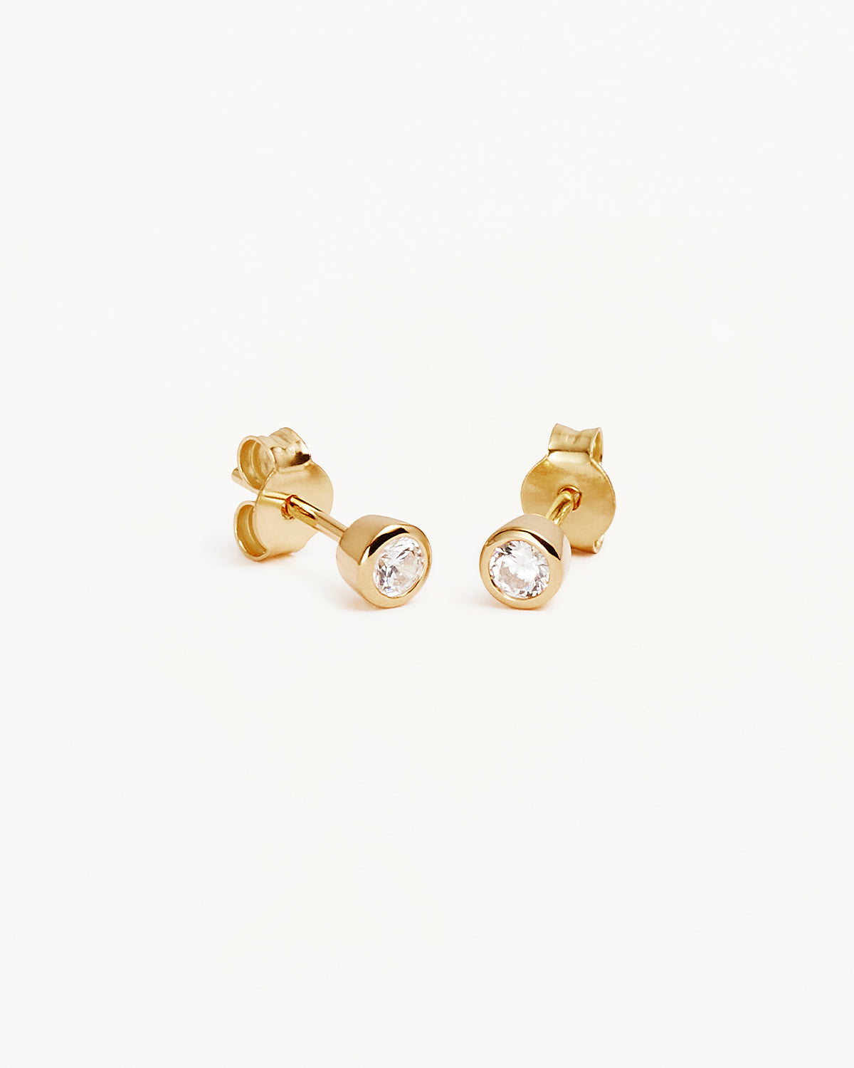 The Radiant Crystal Stud Earrings are a classic everyday earring staple. Featuring a crystal bezel design, they are the perfect studs for ear curation.