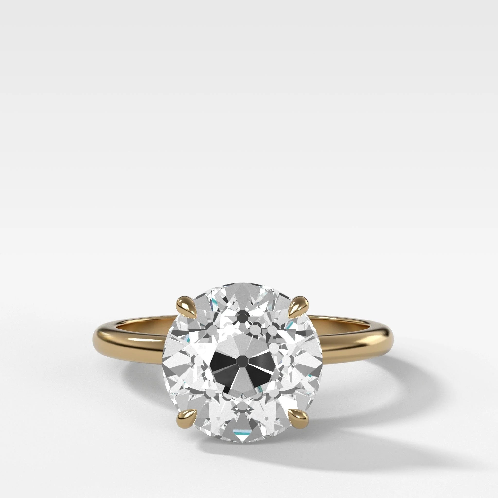 Crescent Solitaire Engagement Ring With Old Euro Cut Diamond