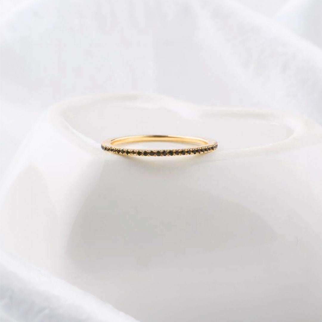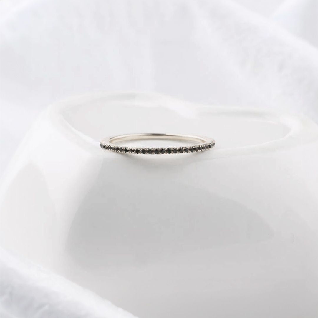 Introducing the Black Diamond Eternity Ring, a stunning and contemporary piece that exudes sophistication and elegance. This exquisite ring features brilliant zircon stones that mimic the allure of black diamonds.