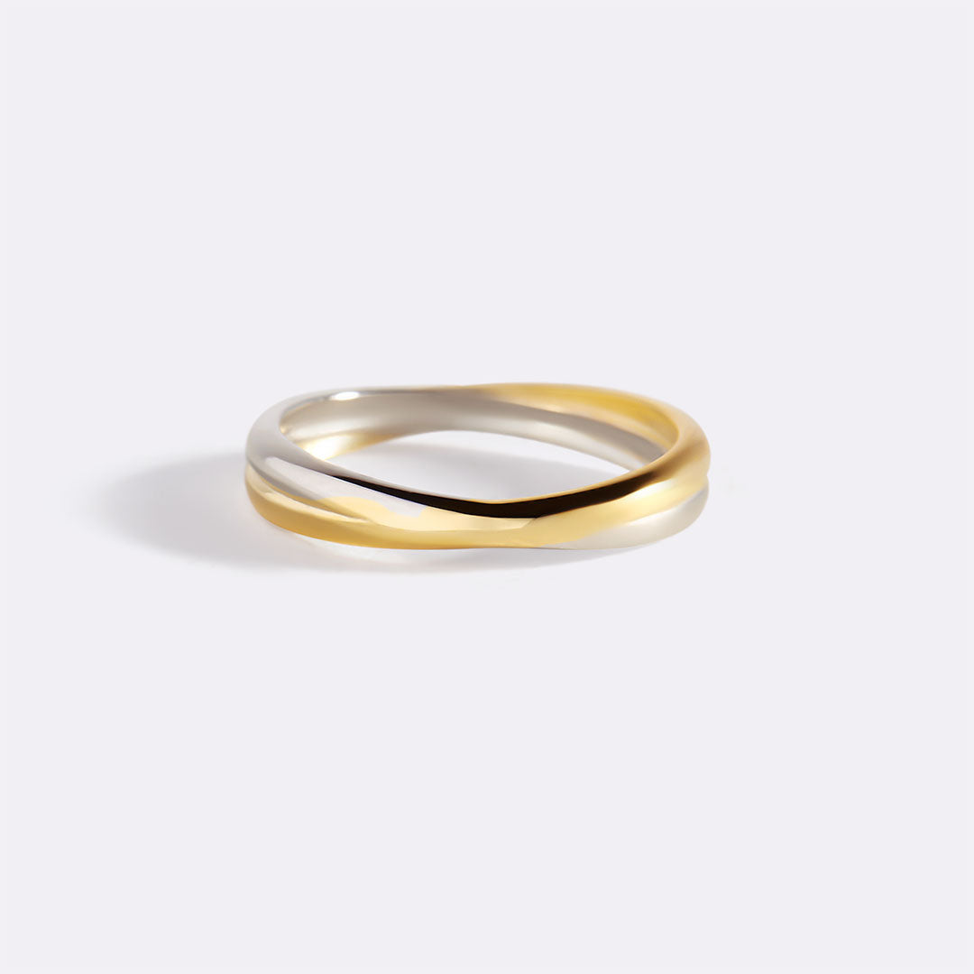 A sleek blend of gold and silver, this mixed metal crossover ring adds a bold yet effortless touch to any look. Designed for stacking or wearing solo, this versatile piece is a must-have for those who love modern, minimalist jewelry.