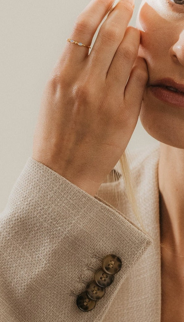Shop Now: Illuminate your look with the radiant elegance of the Alessia Trio Opal Ring—a symbol of love, beauty, and grace that will be cherished for a lifetime. Shop now and embrace the luxury of timeless design.