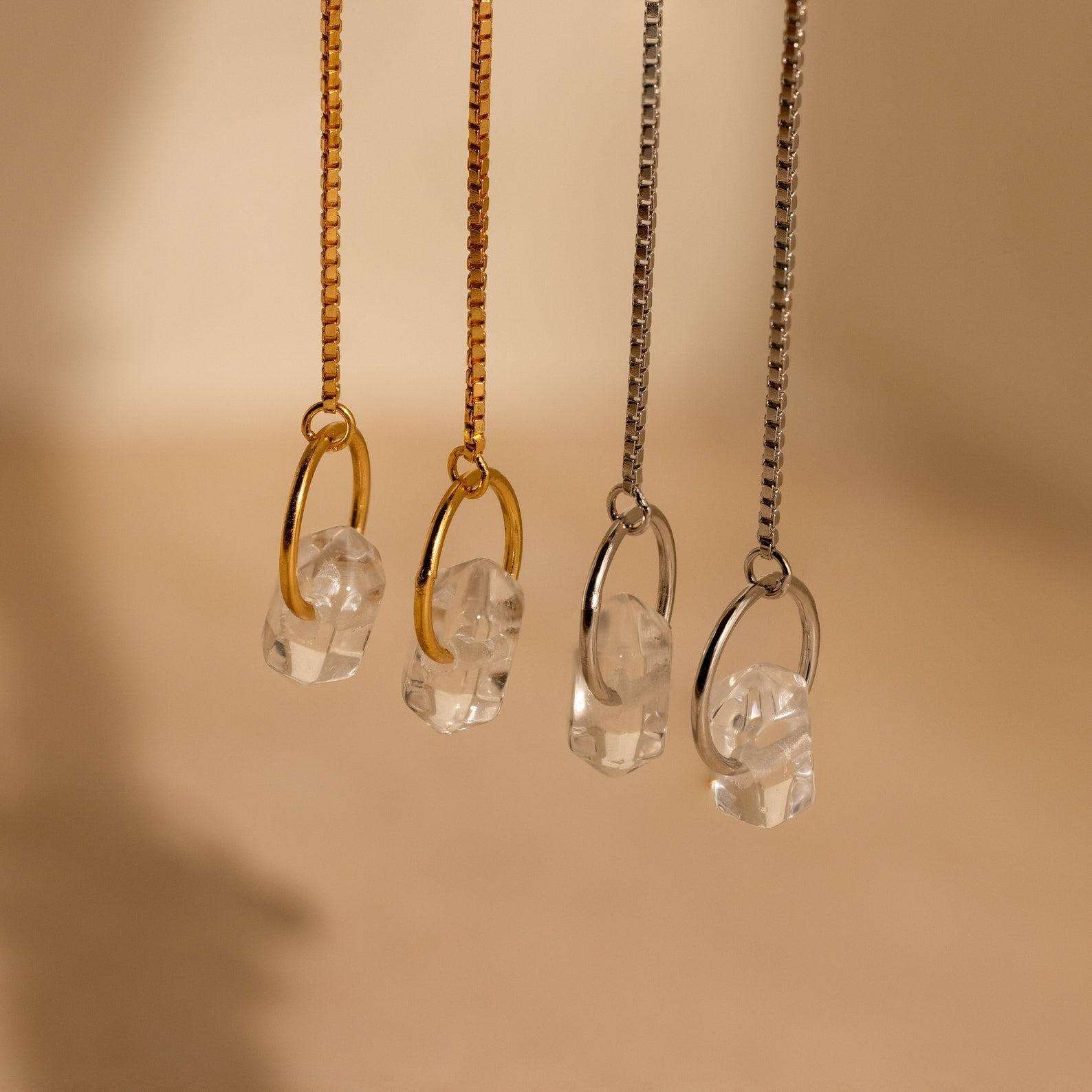 Add the Herkimer Diamond Threader Chain Earrings to your collection today and enjoy the perfect blend of modern style and timeless elegance.