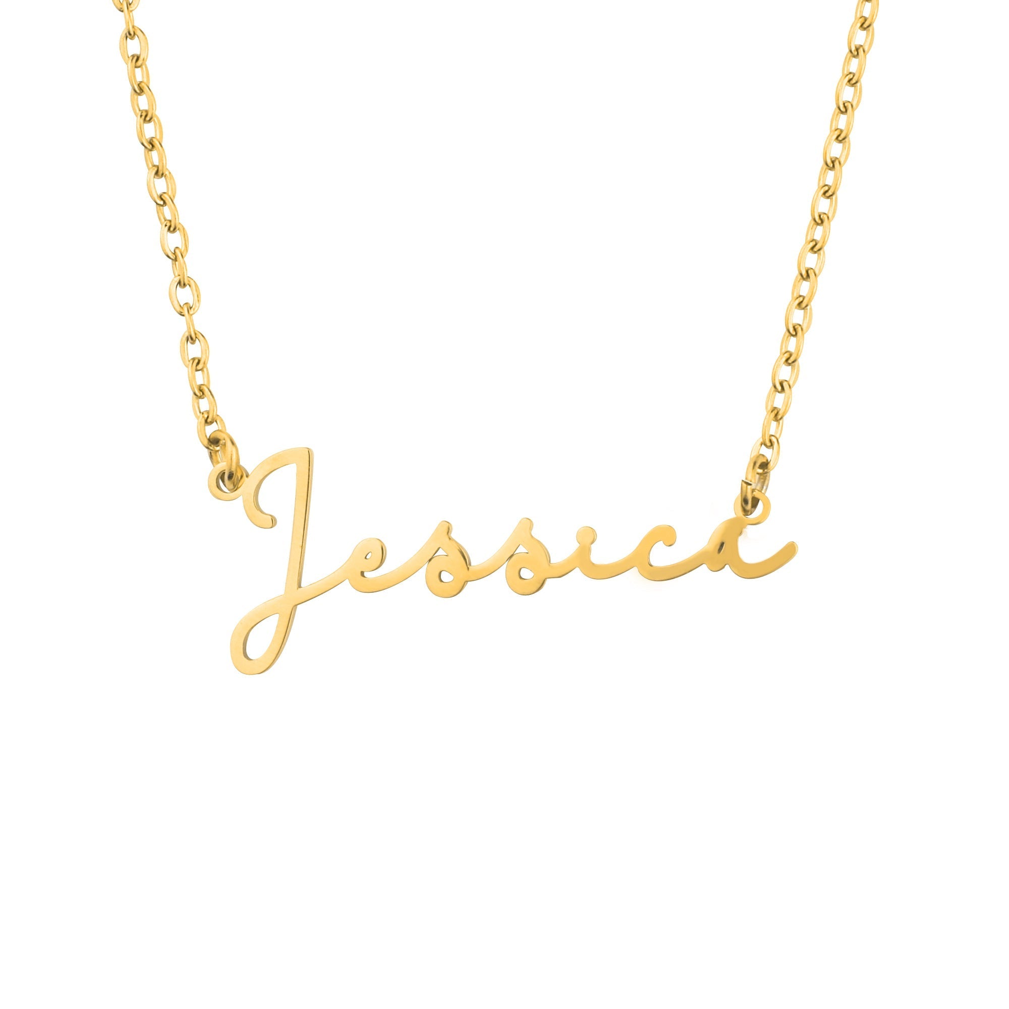 The name necklace is the perfect way to show someone you care. Crafted in sterling silver, with option for yellow gold plate or white gold plate, rose gold plate, it is an elegant and stylish accessory that will be treasured forever. It comes with a 16" + 2" chain to ensure a comfortable and secure fit. This necklace makes the perfect gift for any occasion, and its timeless design will always be on trend.
