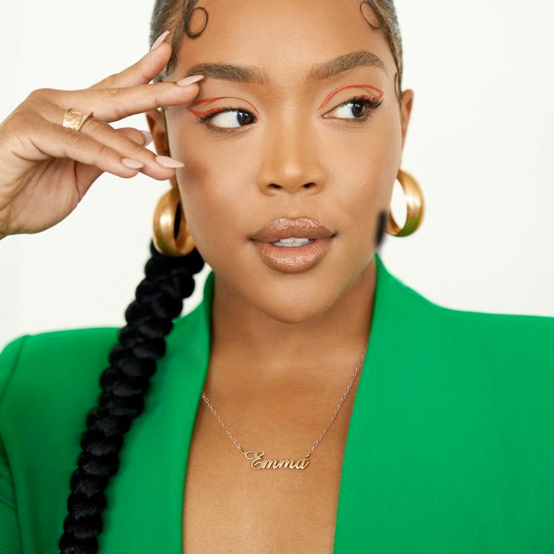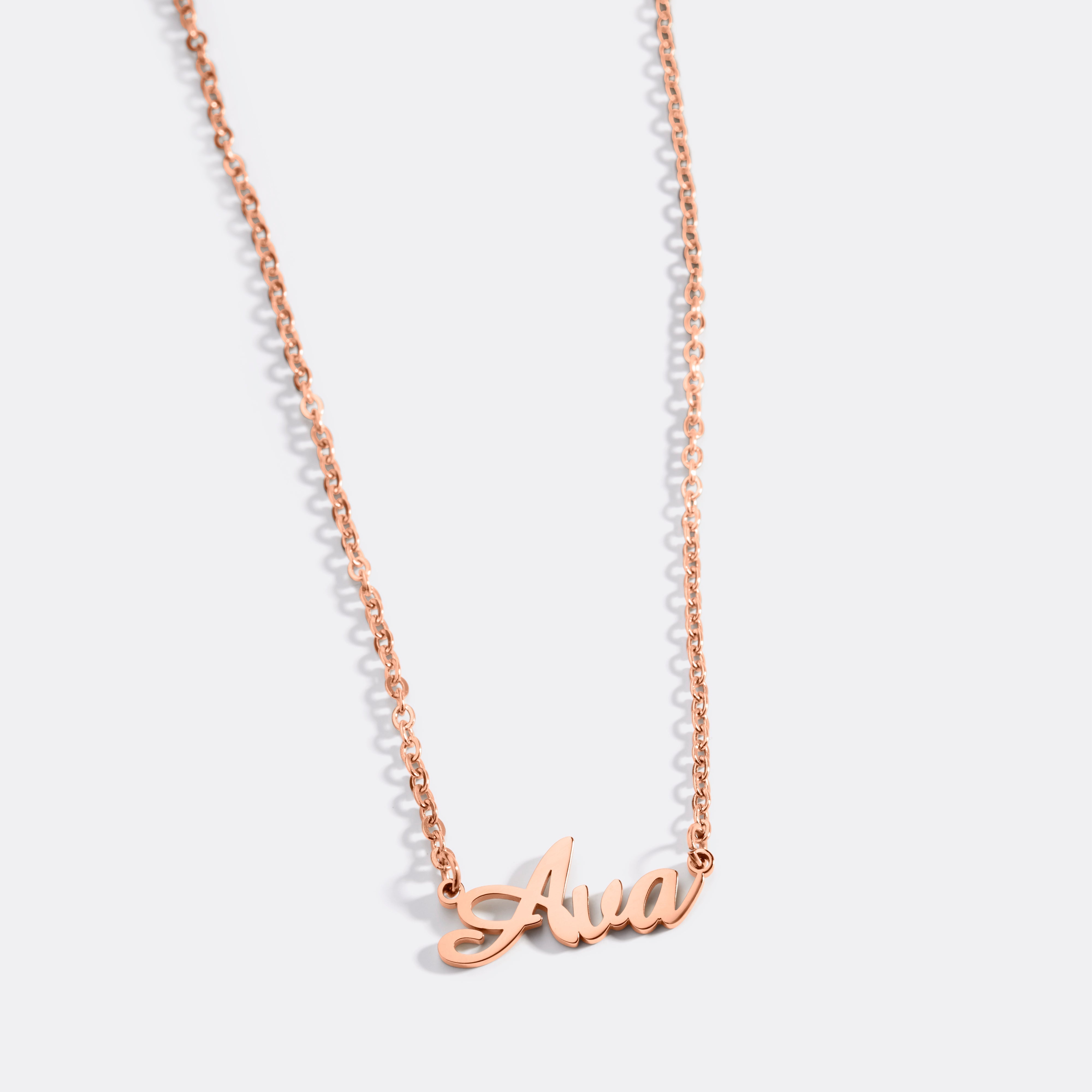 This Quill Name Necklace is the perfect accessory for any occasion! Crafted in sterling silver, with option for yellow gold plate or white gold plate, rose gold plate. This necklace features a 16" + 2" chain that is personalized with your name or the name of a loved one. This necklace makes a great gift for birthdays, anniversaries, Mother's Day, or just to show someone you care. Show off your unique style with this beautiful and timeless piece.