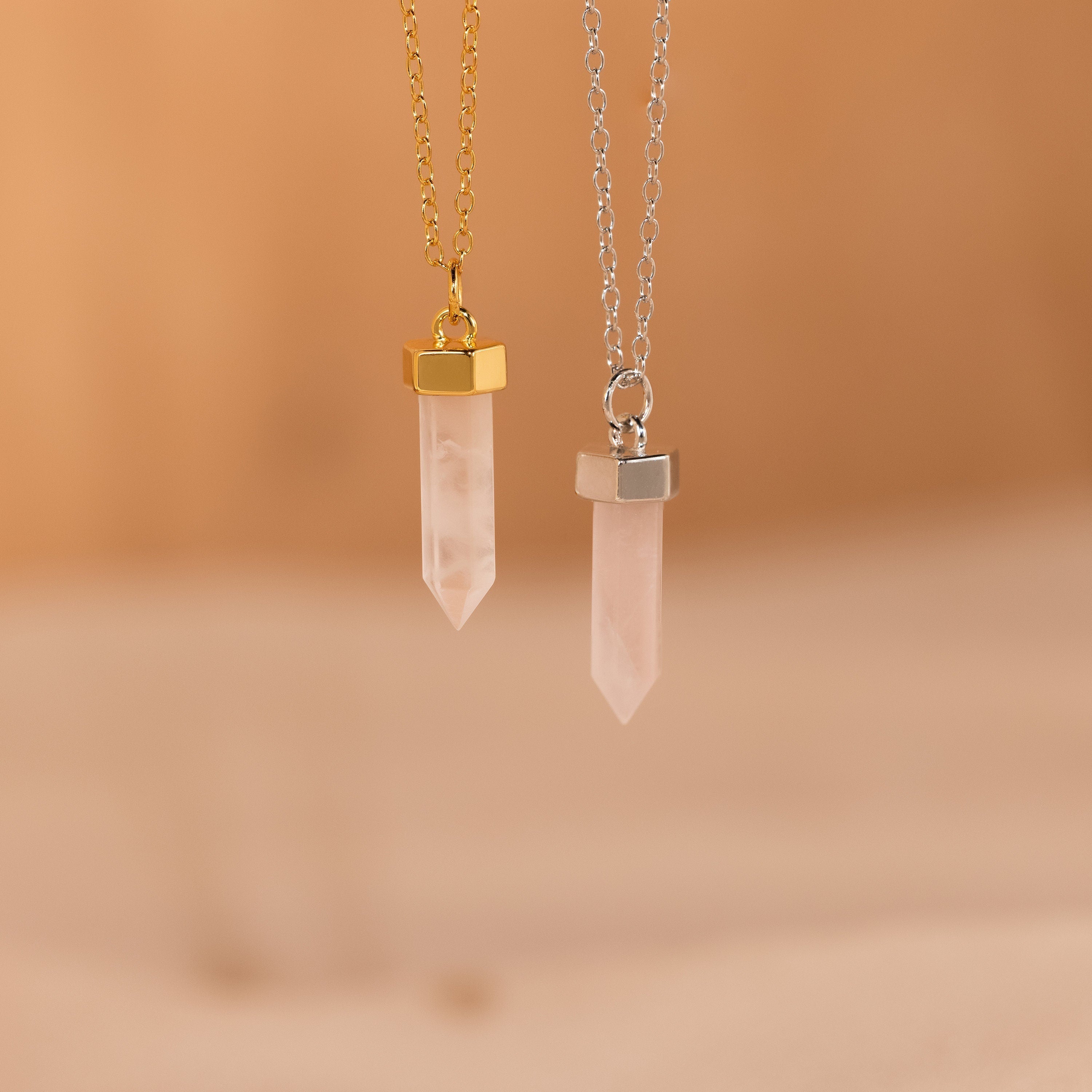 Invite love and positivity into your life with our elegant Rose Quartz Necklace, crafted in sterling silver, with option for yellow gold plate or white gold plate, rose gold plate for a timeless look.