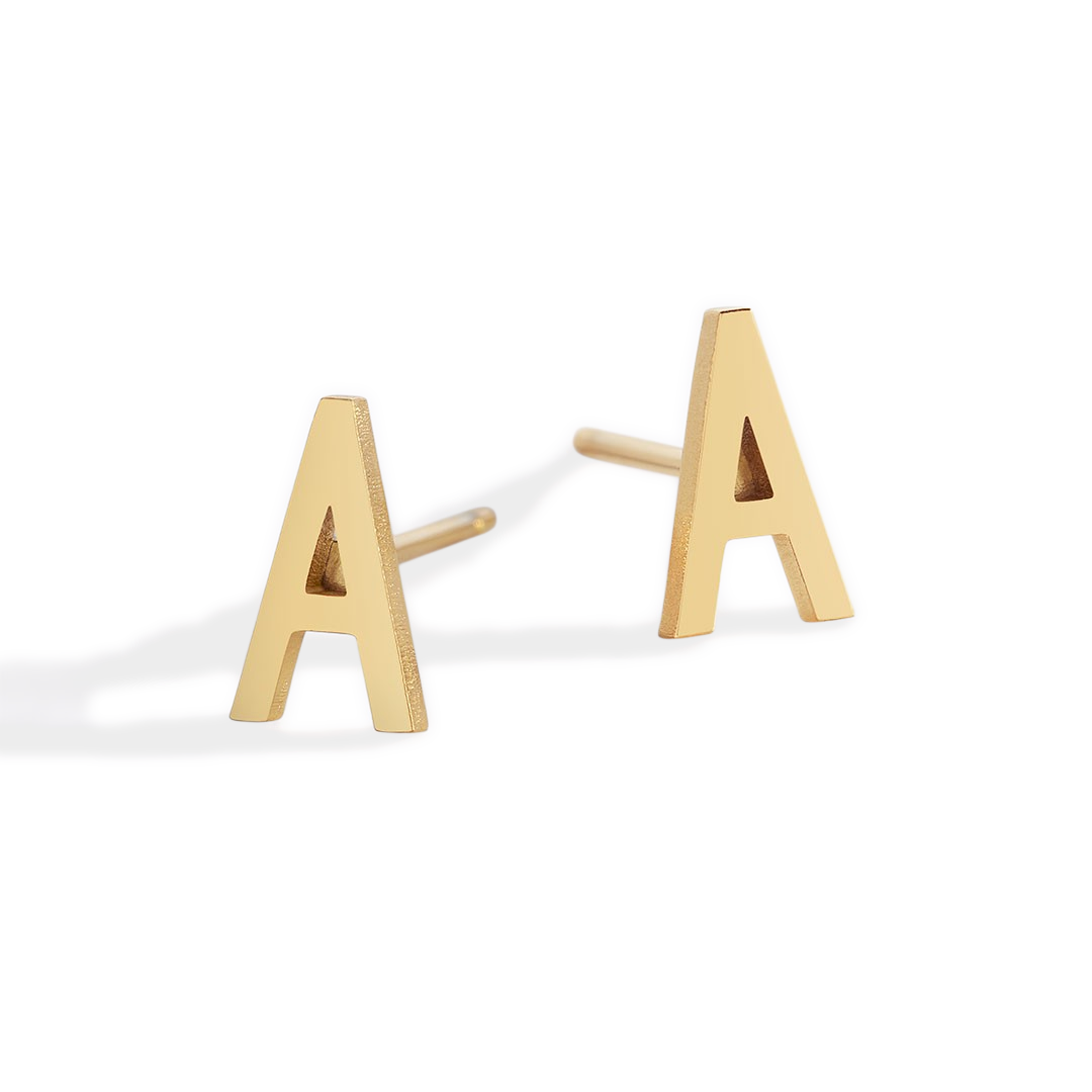 These initial earrings are a stylish, delicate way to show off your initials. The skinny block script pairs nicely with any outfit, adding a classic and refined touch to your looks.