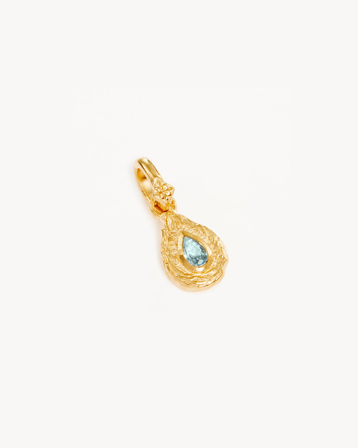 Embrace the love that surrounds you with our March Birthstone Annex Link Pendant. This keepsake is meticulously designed to capture the unique essence of March birthdays, featuring a vibrant synthetic aquamarine and cubic zirconia set in a beautifully battered teardrop pendant. Allow the aquamarine to instill a sense of calmness and clarity, opening you up to the magic of new beginnings.